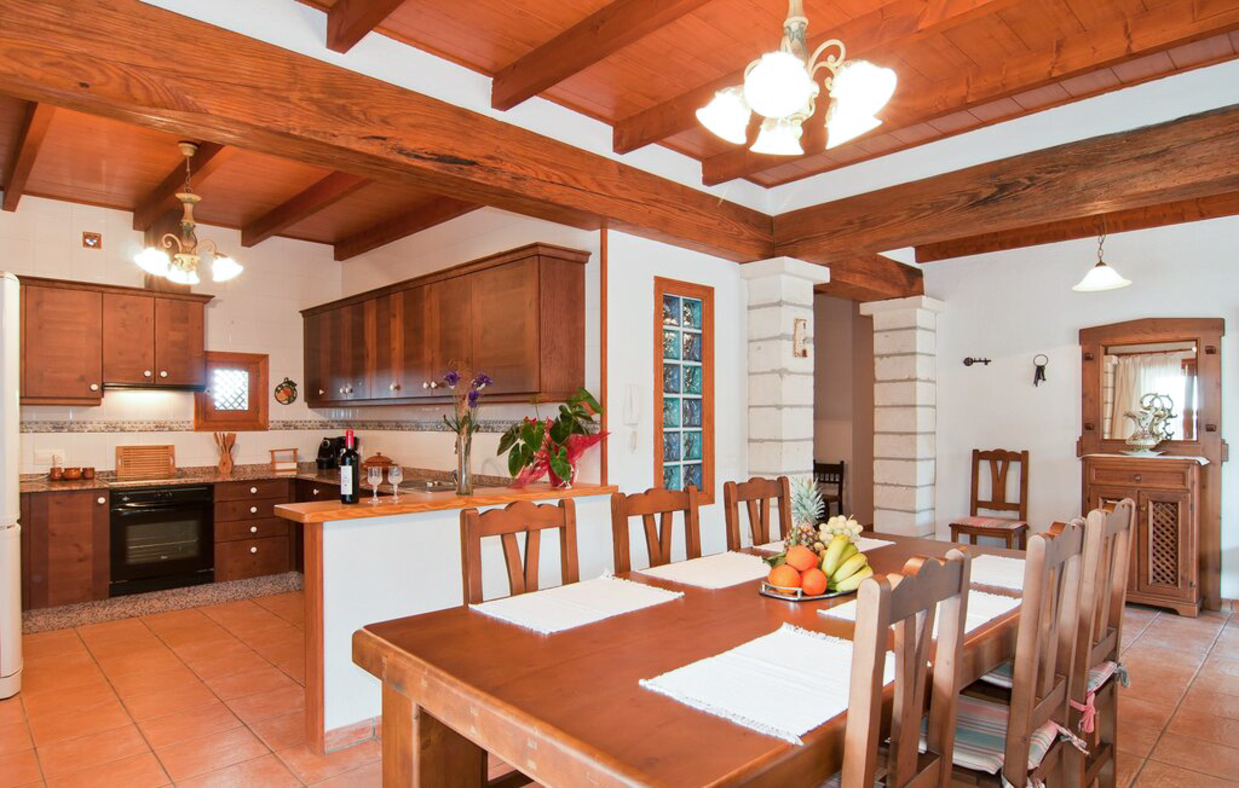 La casa cuenta con tres habitaciones luminosas y confortables equipadas con camas dobles, cada una con aire acondicionado ideales tanto para parejas como para pequeñas familias. Con una superficie de 120 metros cuadrados, el espacio está distribuido de manera funcional y acogedora. Dispone de dos baños completos uno con bañera y otro con ducha. Una cocina americana totalmente equipada con frigorífico, horno, cafetera, tostador, hervidor, lavavajillas y todo lo necesario para preparar tus comidas favoritas.